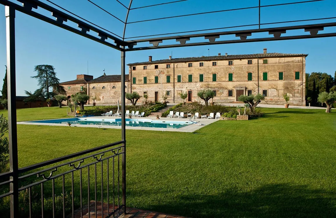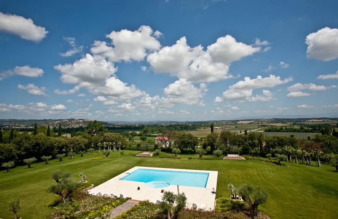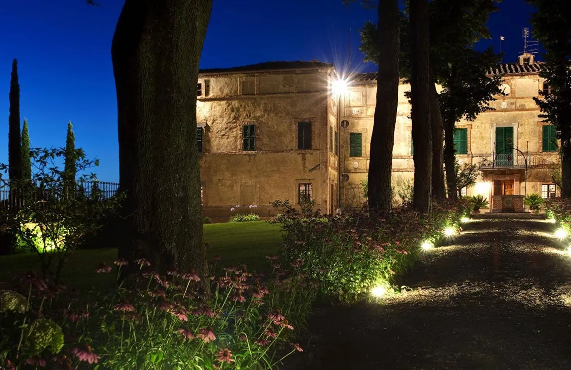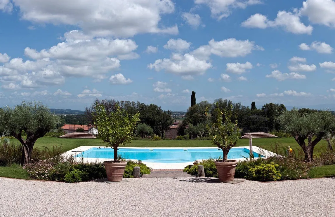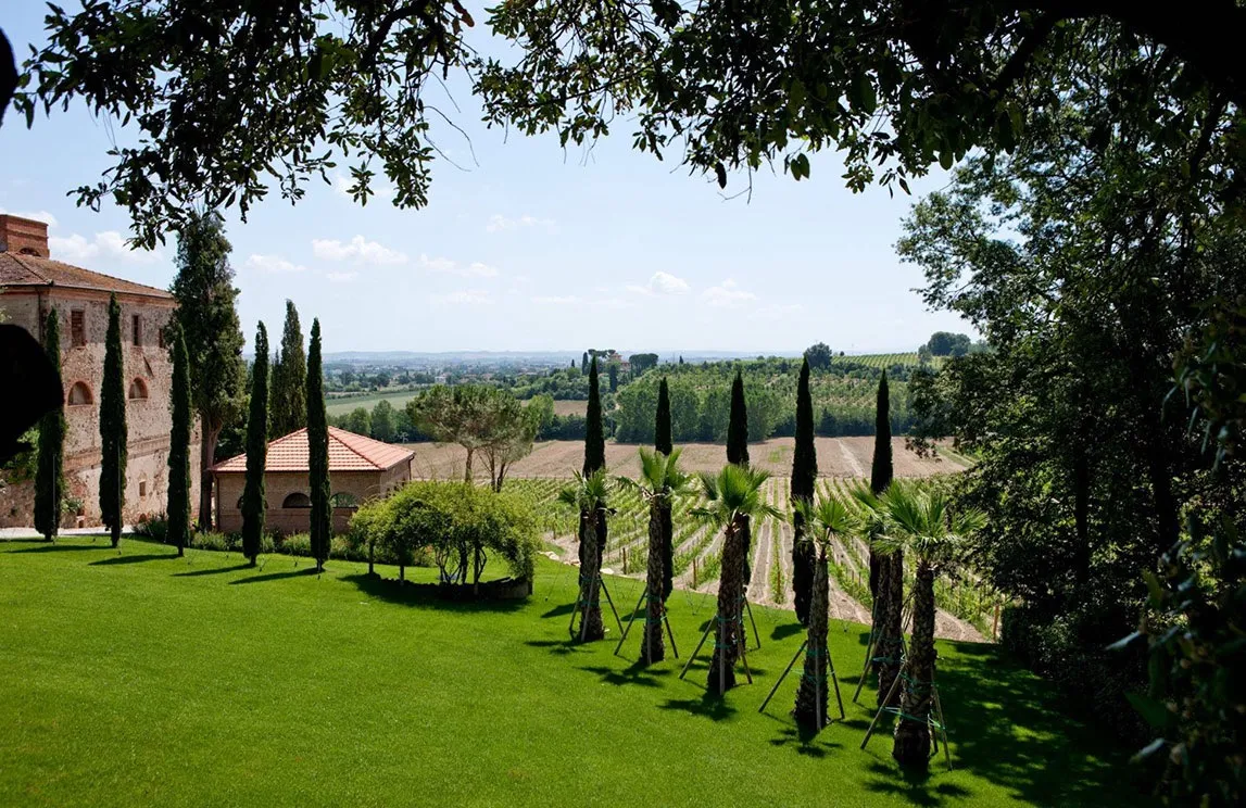 Specifically in Montalcino, Spazio Verde realized the park of a 15th-century wine estate. The botanical selection stayed true to the land: centuries-old olive trees, palms, cypresses, four-season blooms, and citrus trees housed in Impruneta terracotta pots.