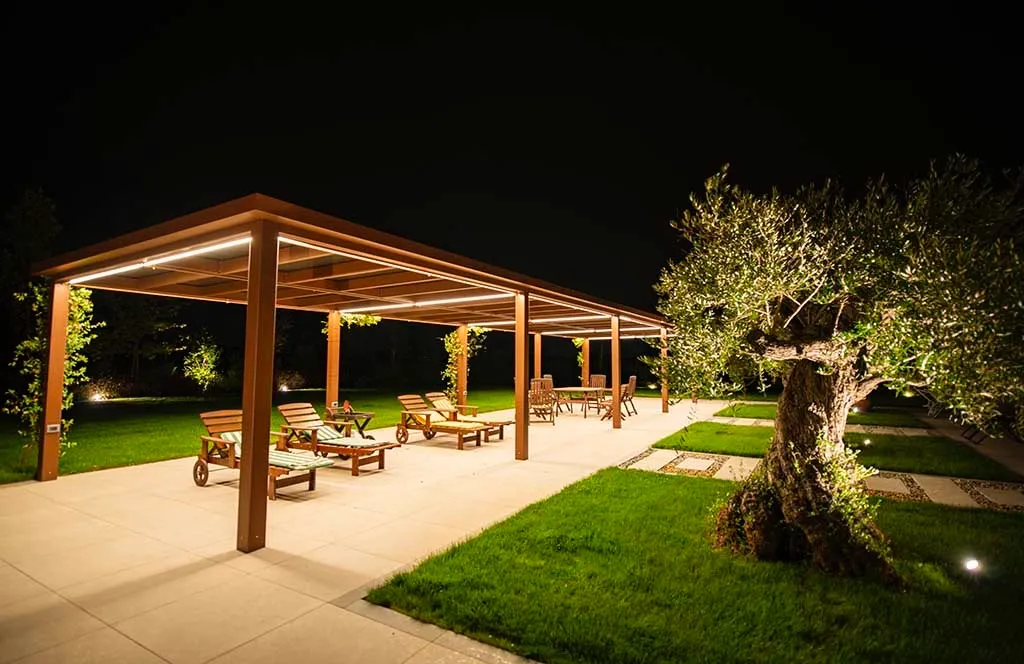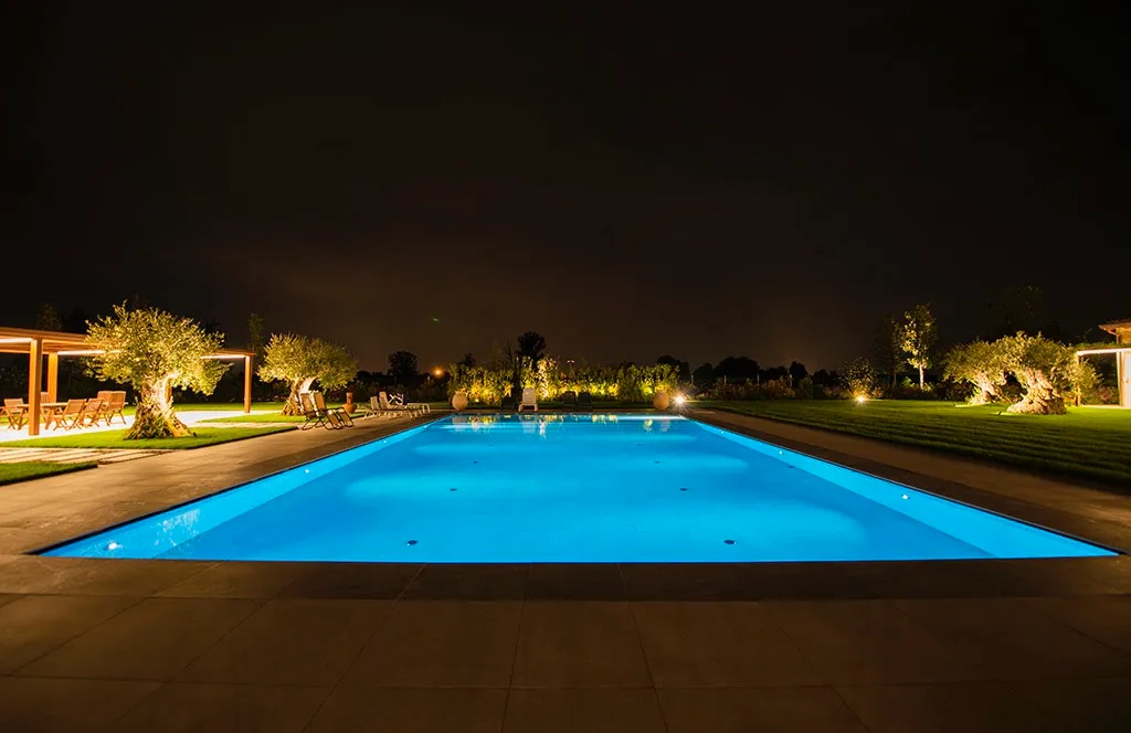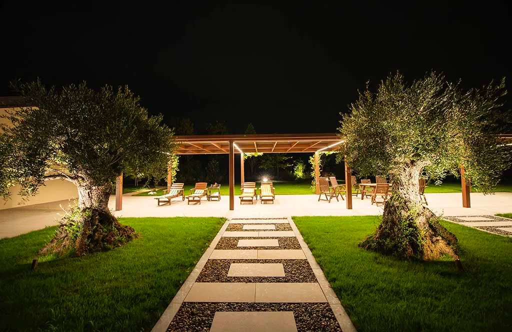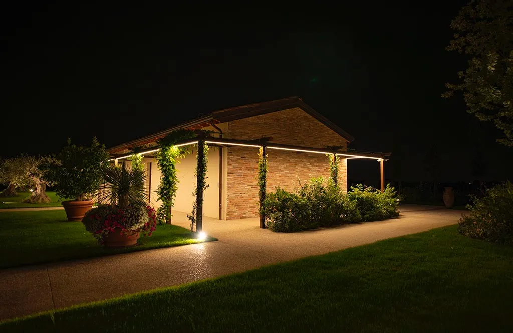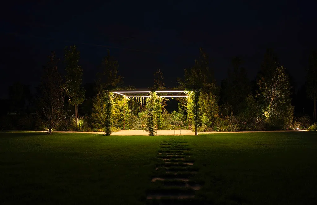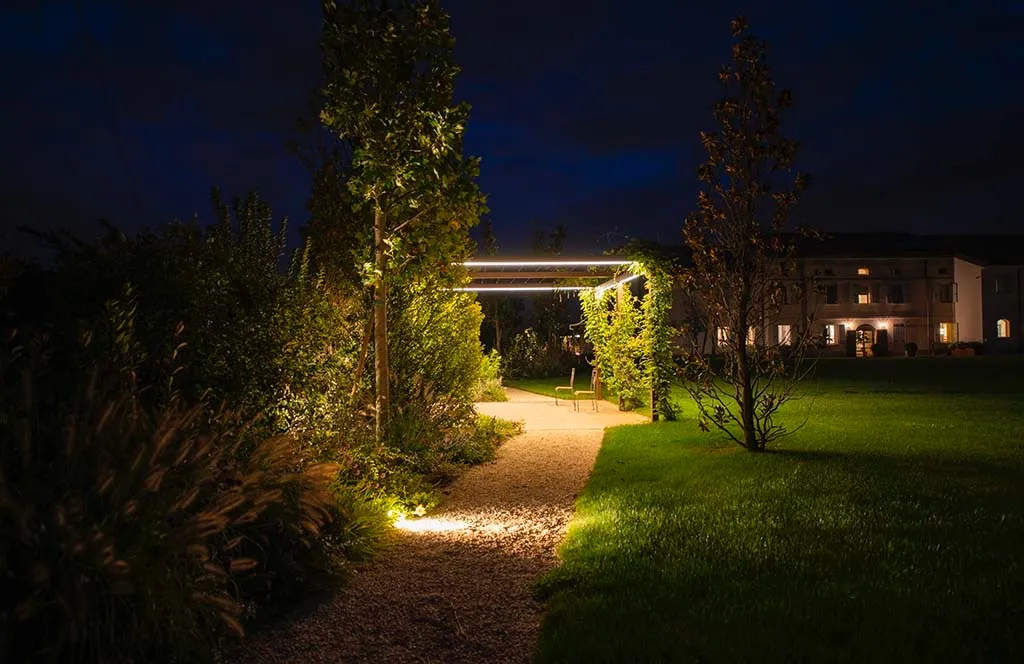 One of our most prestigious projects: a 19th-century agricultural estate. To enhance its nocturnal beauty, we designed and installed a custom lighting system. Effective, dramatic, and functional, this LED system creates a magical atmosphere while remaining fully respectful of the surrounding environment.