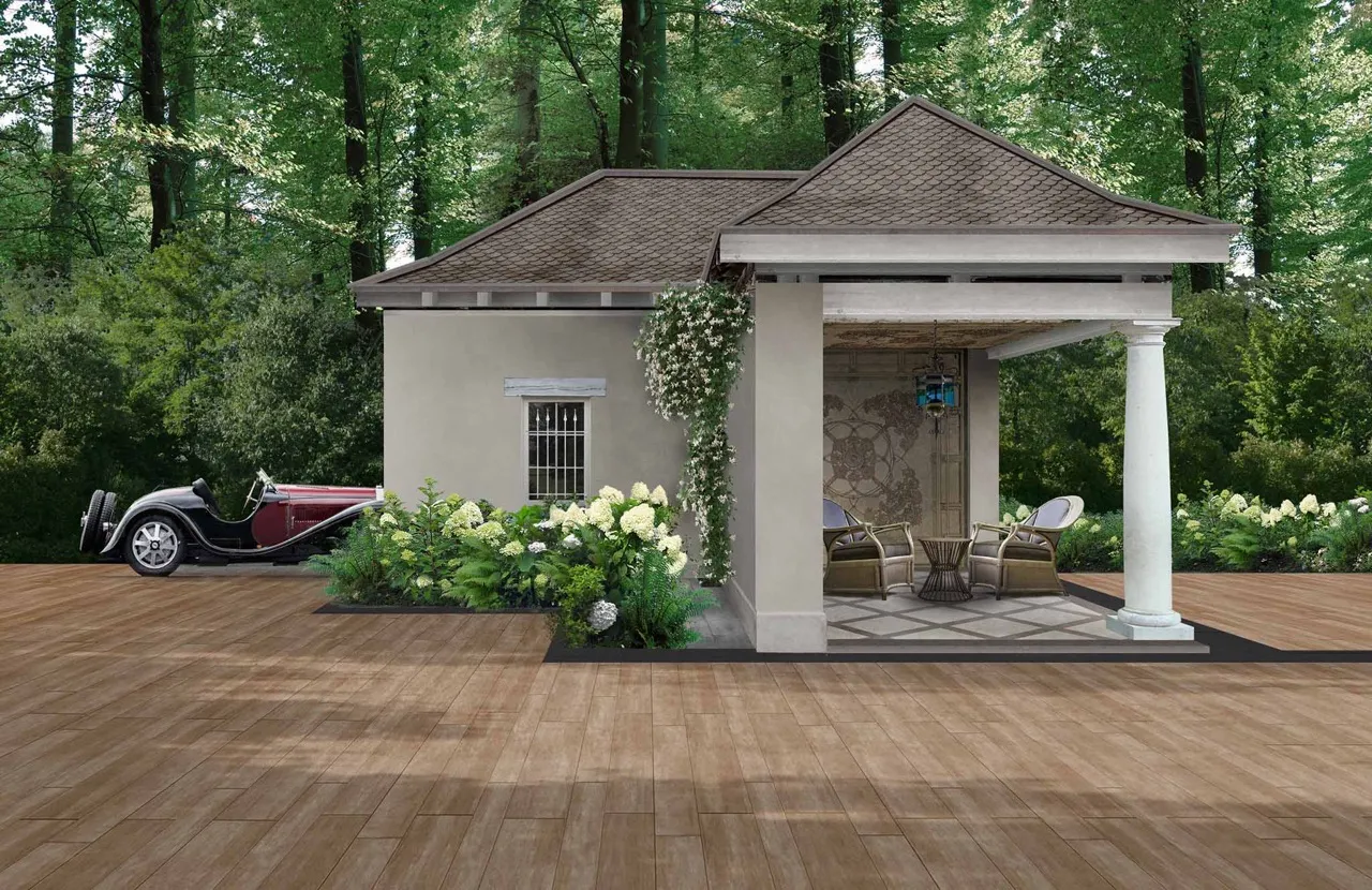 A villa with a vintage soul, graced by classic cars. This project features the elegance of a functional yet spontaneous garden set within a native landscape. The design incorporates multiple styles and trends, reflecting the strong personality and refined taste of our client.