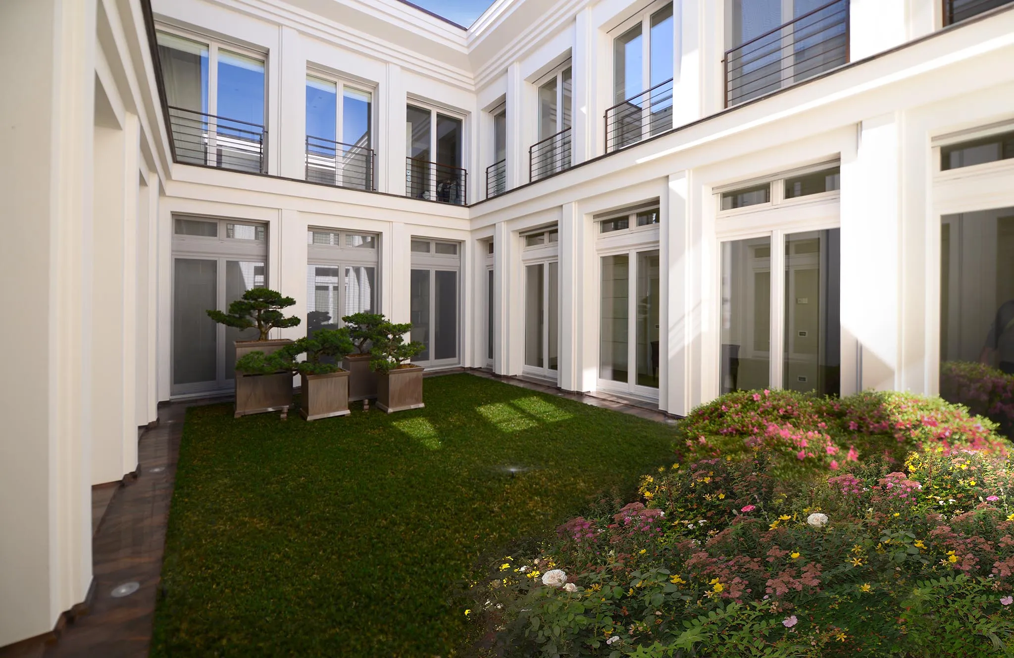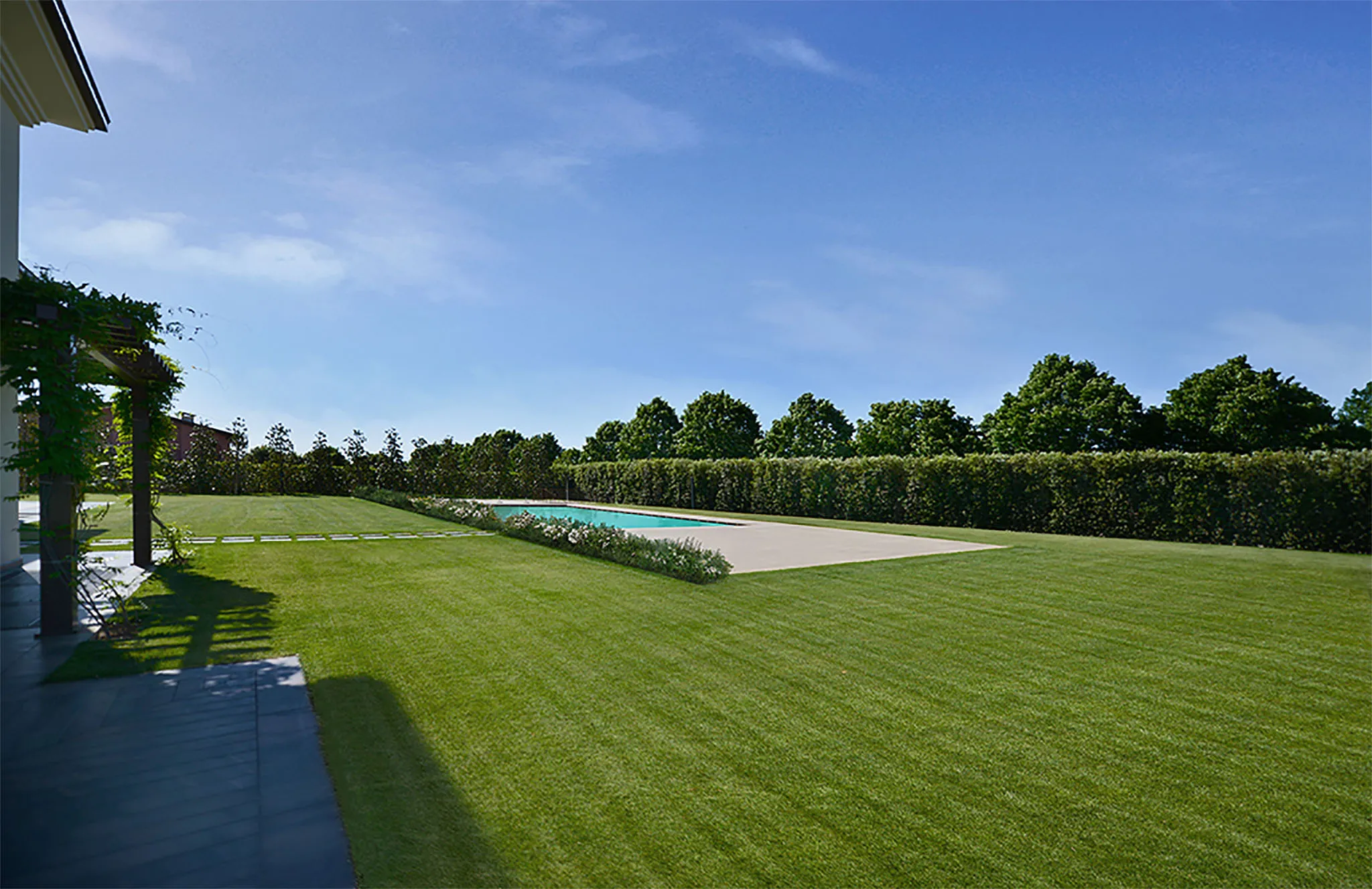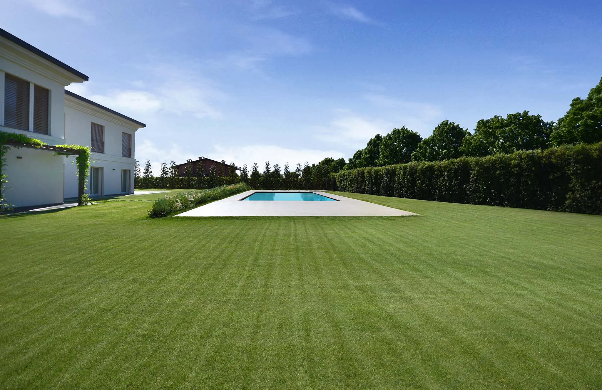 A historical interpretation of a macro-area: wide open spaces enriched by specimen plants, characterized by cleanliness and meticulous craftsmanship within its elegant simplicity.