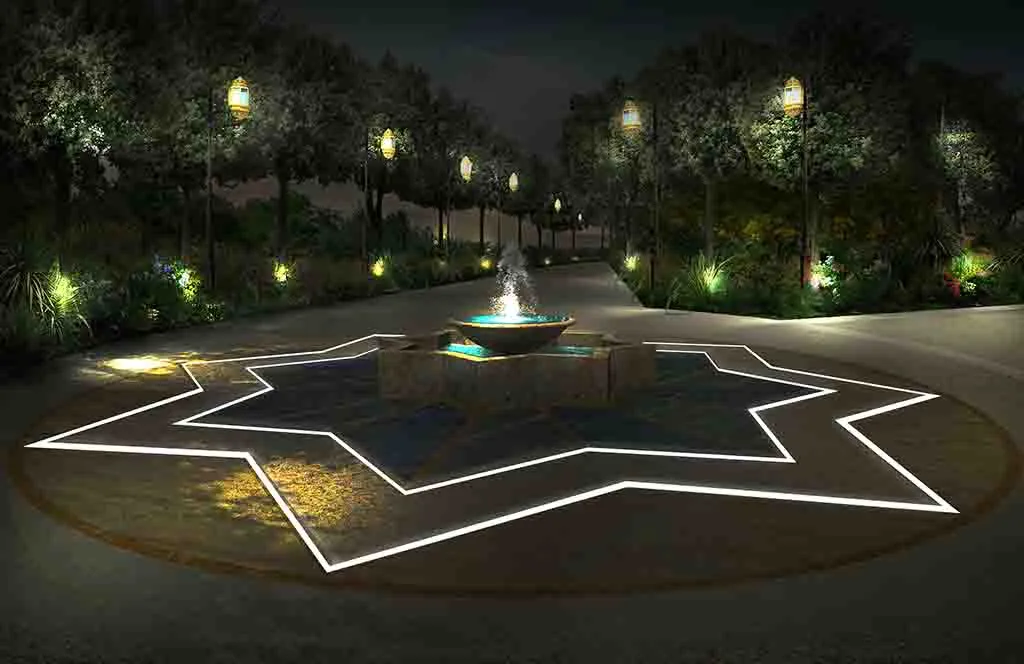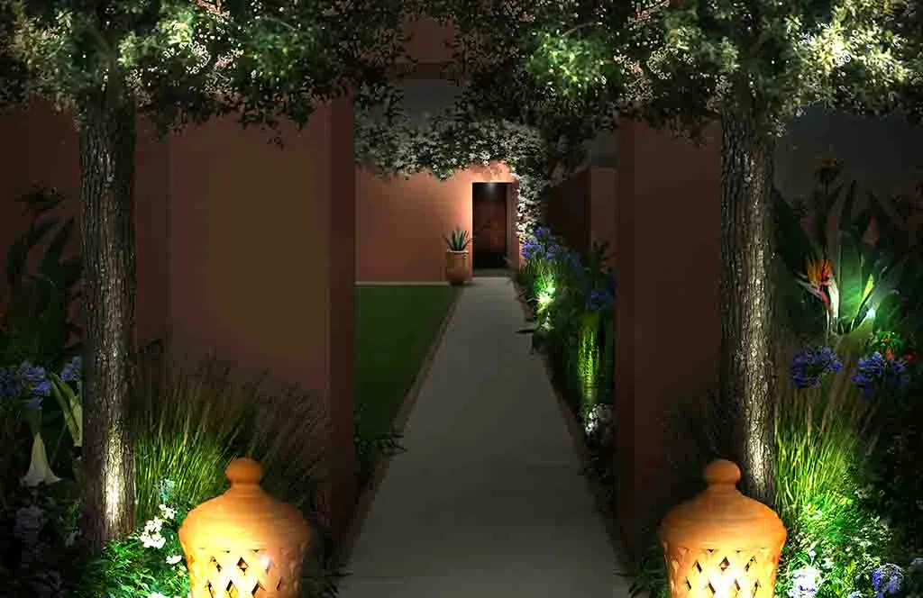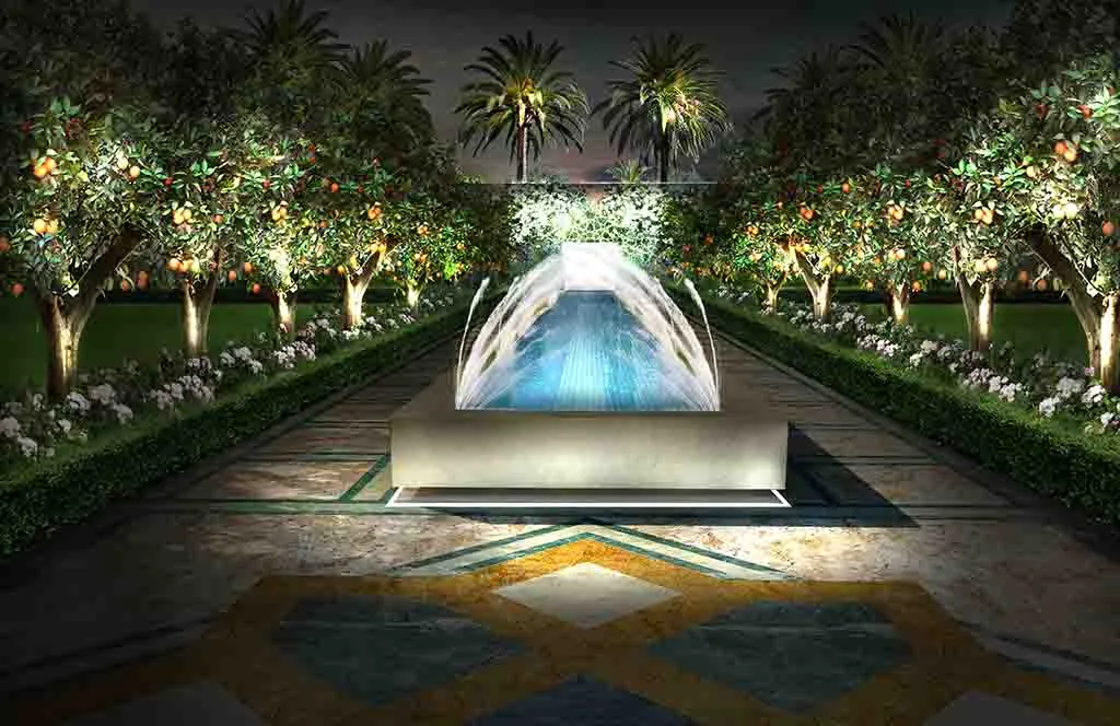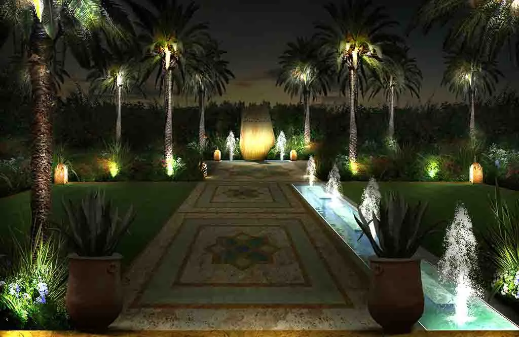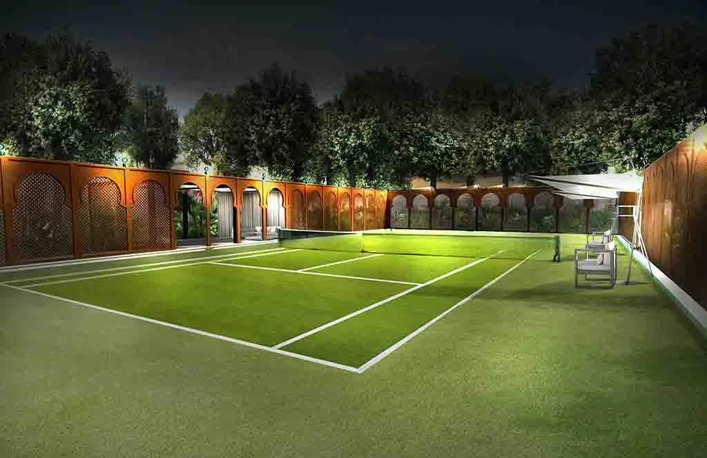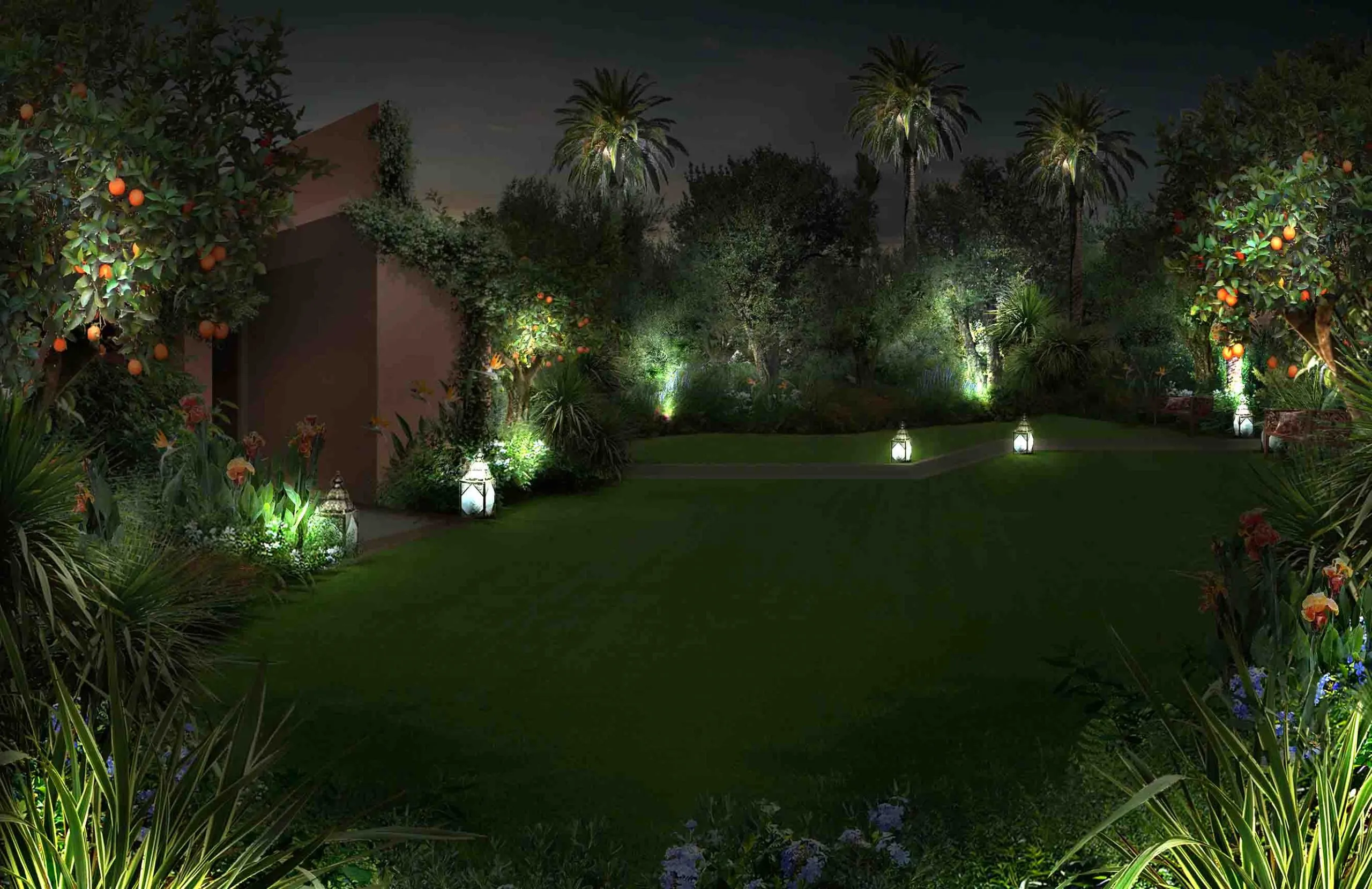 Romance in Marrakech: the design of a luxurious Guest House where the intricate paving details, architectural trellises, and bespoke furnishings create a truly characteristic and unparalleled atmosphere.