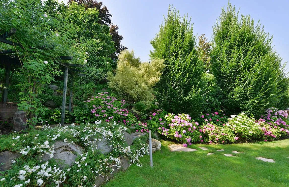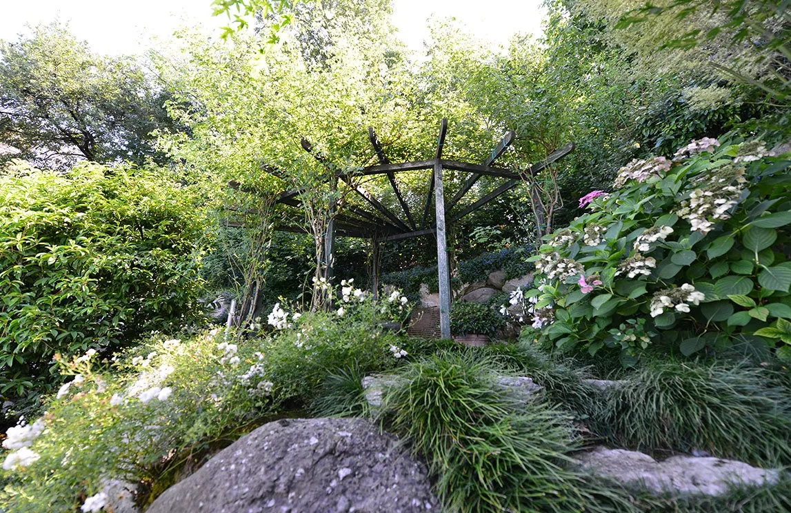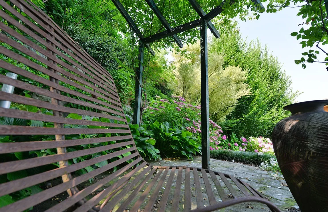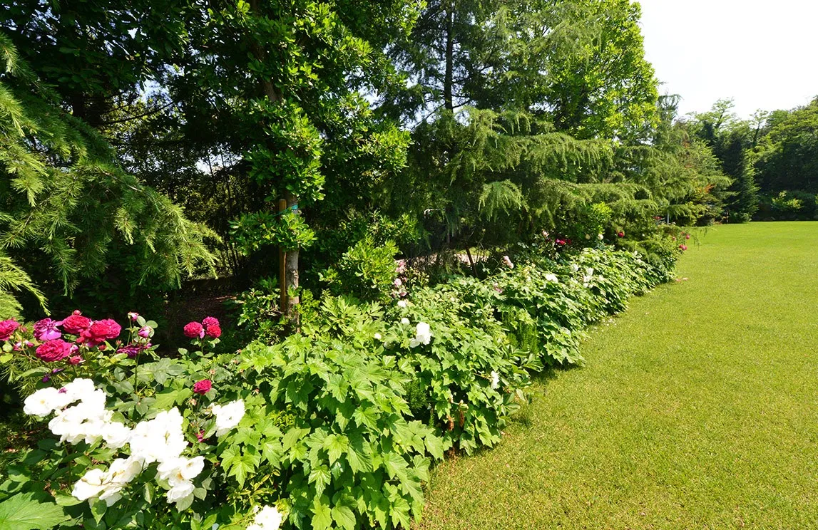 “There is no world without Verona walls…” wrote Shakespeare. Today, Verona remains a magical corner of the Veneto region, filled with Renaissance splendor. For a private city villa, Spazio Verde created a romantic sanctuary featuring “cloud-pruned” (bonsai style) olive trees, a collection of Hydrangeas and antique roses, and vibrant year-round blooms.