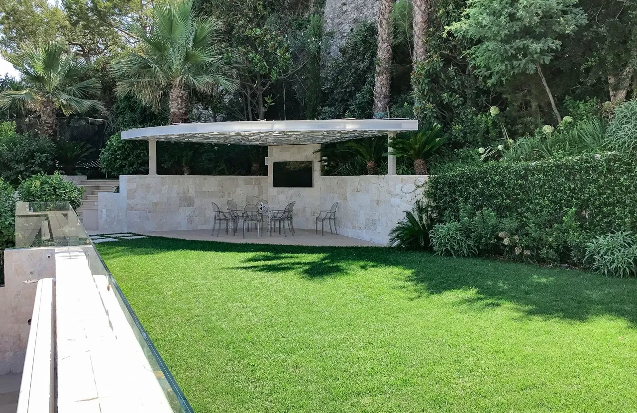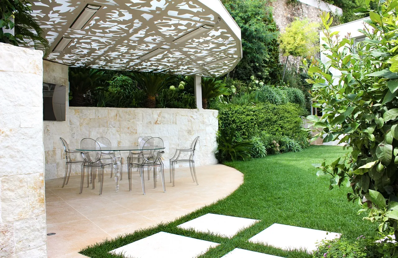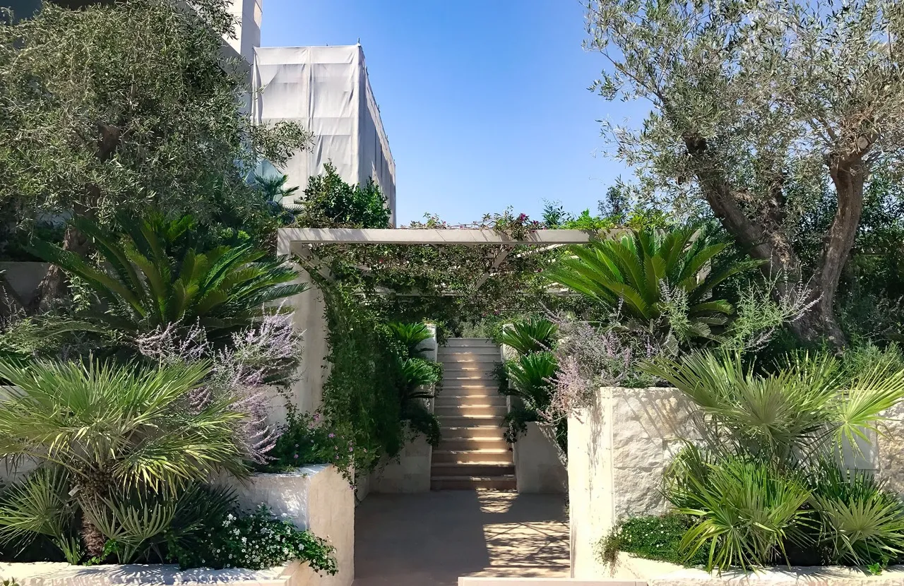 A garden we designed to mirror the luxury and allure of the French Riviera, one of the most stunning vistas in the Mediterranean. The vibrant and original selection of greenery enhances the eccentric character of this villa.