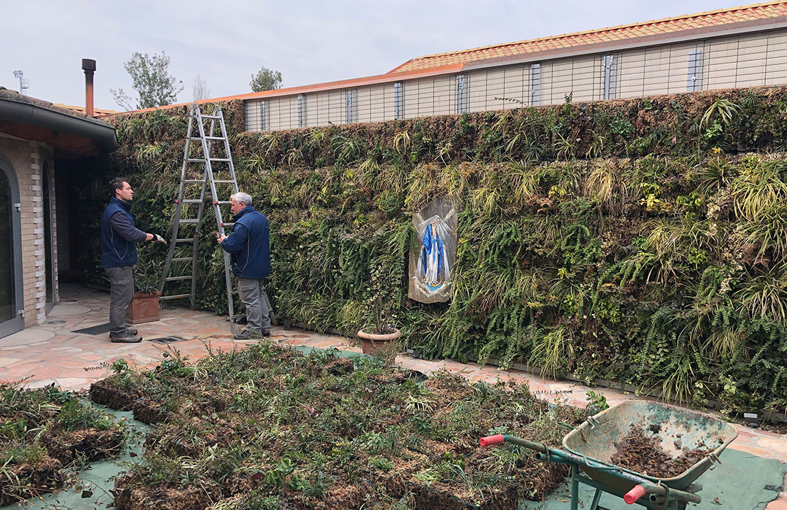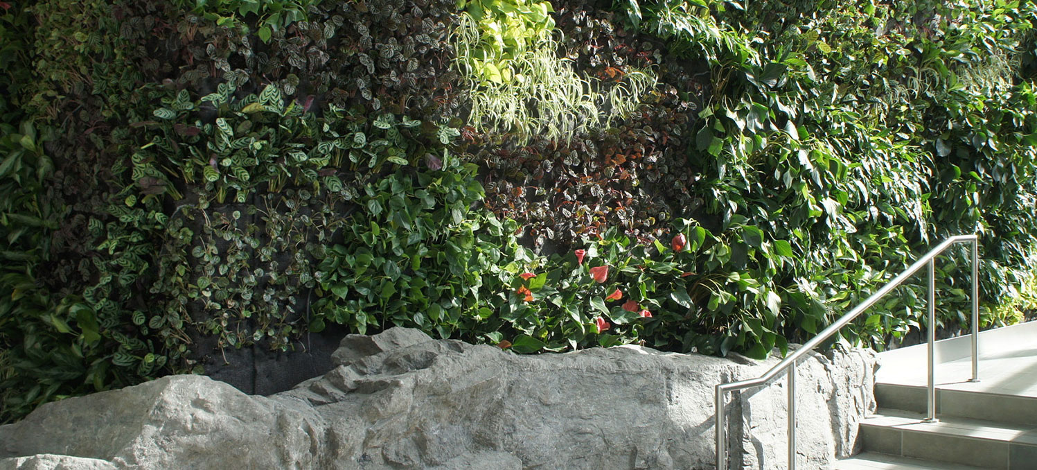 Spazio Verde can design, build and install both indoor and outdoor green walls using the most sophisticated technologies. Of fundamental importance for the creation of green walls are the use of low-maintenance plants, an automated fertigation system designed and built specially for each case, and a waste water recovery system.