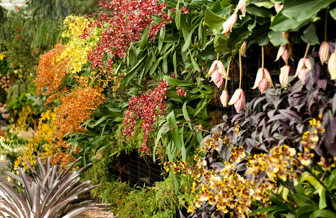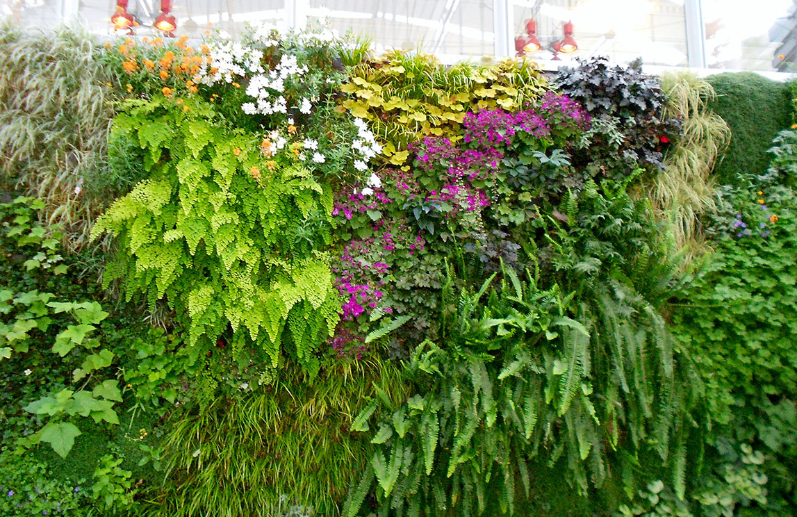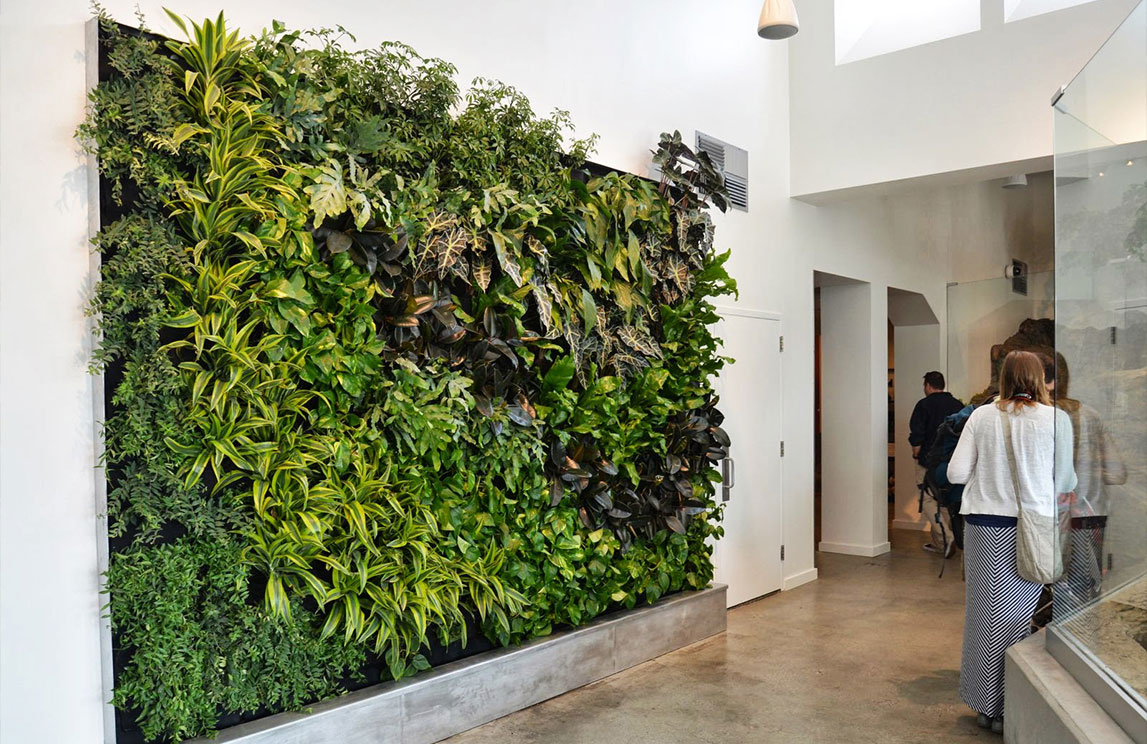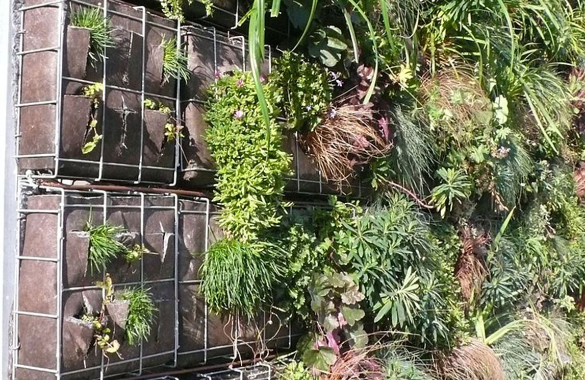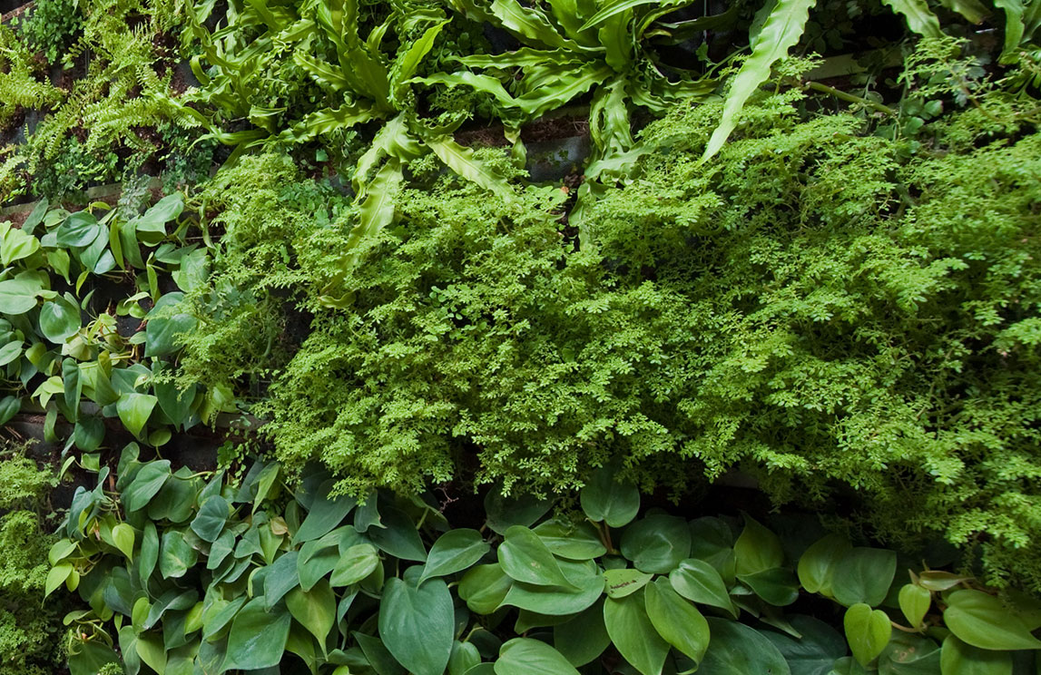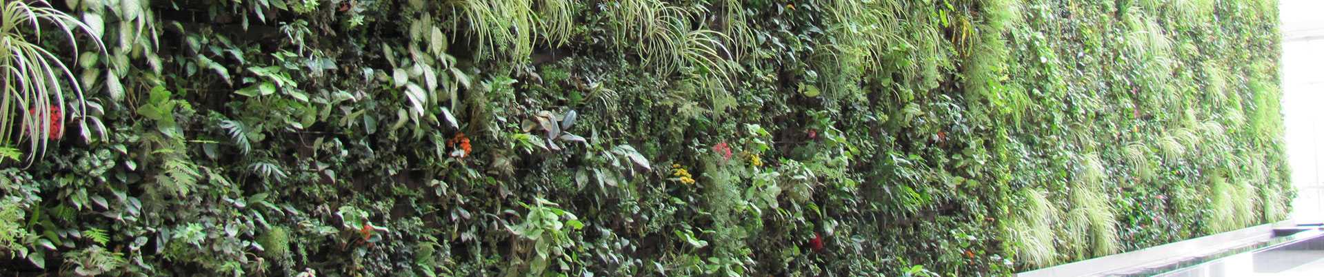 A green wall is a “vertical garden” growing up a wall of a building or space. To obtain the desired result, a system consisting of one or more stainless steel meshes is anchored to the wall via special spacers, allowing a layer of plants to be attached together with a water supply layer and an automated irrigation system hidden from view.