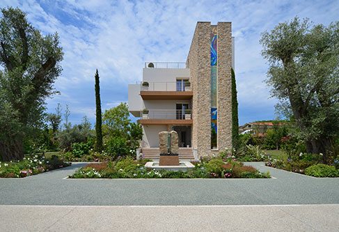 Perched on the gentle slopes of a hill in the Garda region, the Villa is nestled in a predominantly natural setting. The garden that surrounds it is a constantly evolving work of art, designed to blend harmoniously with the surrounding landscape and offer a refuge of beauty and tranquility.