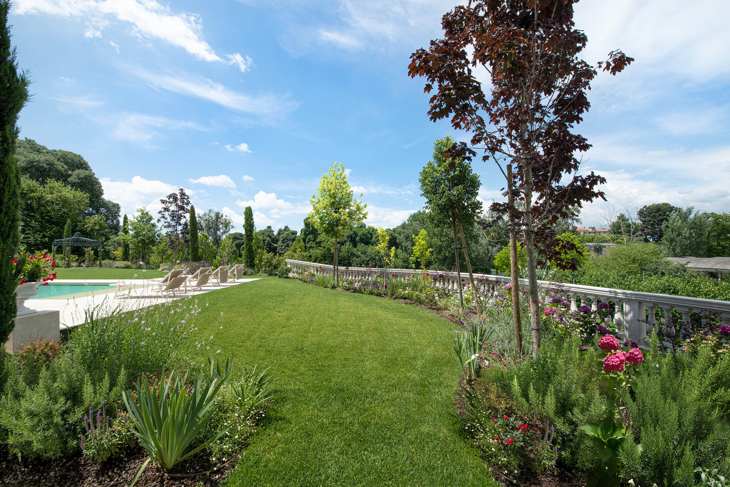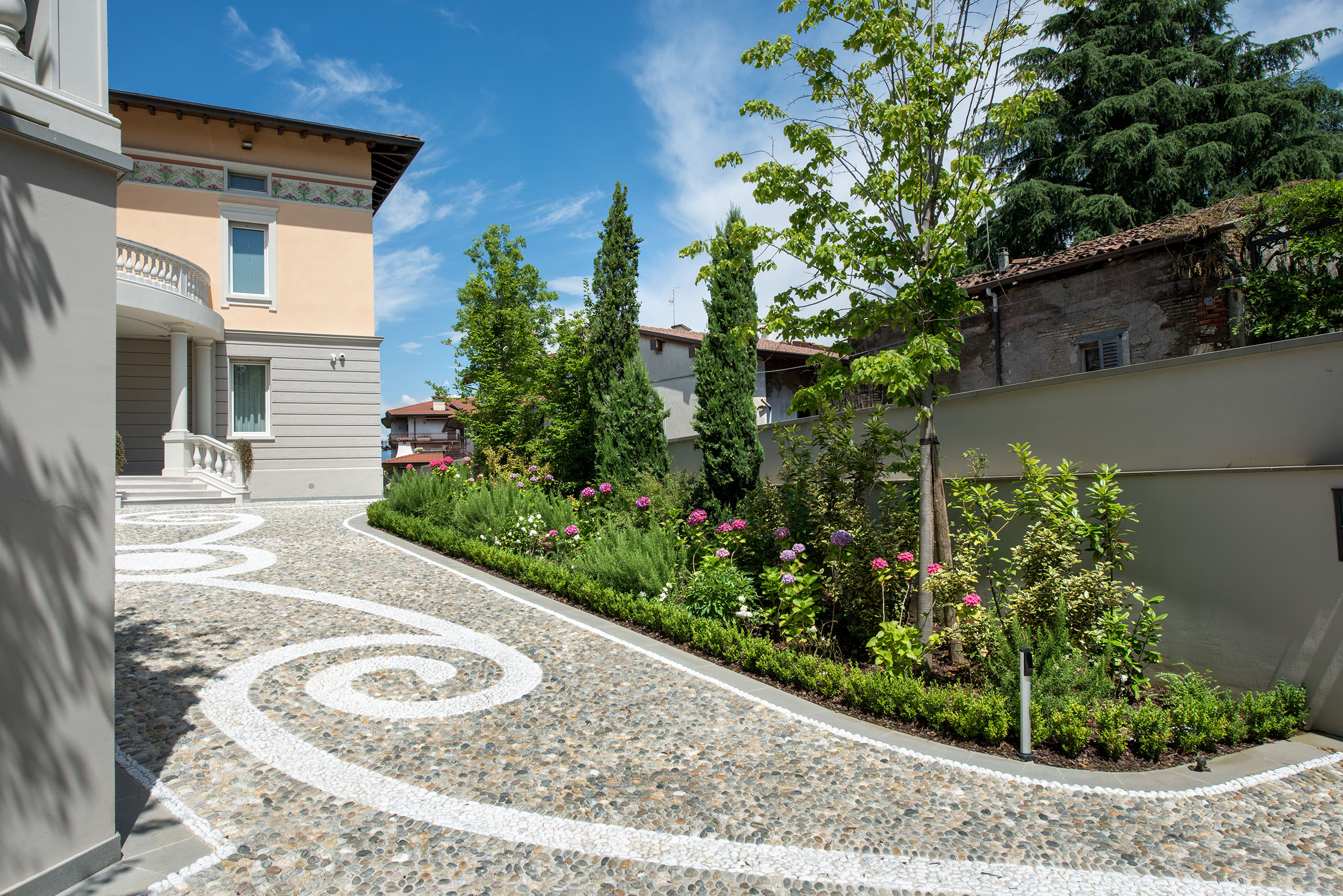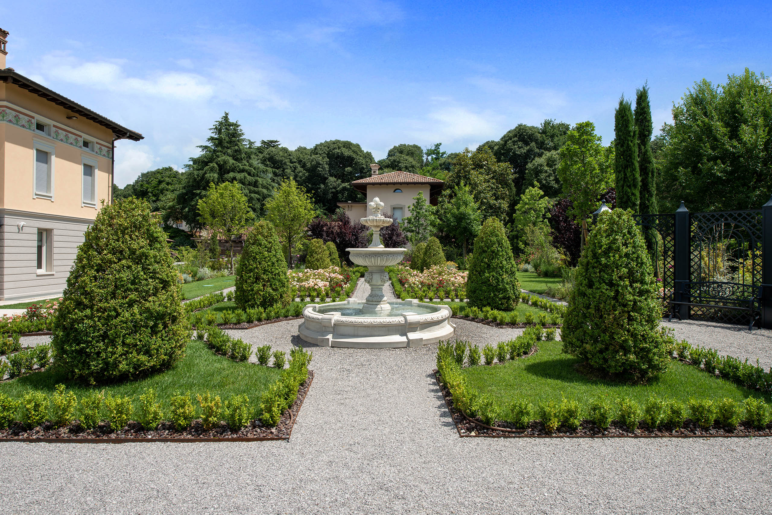 The villa and garden are designed to integrate harmoniously, creating a composition that celebrates natural beauty and architectural artistry. The villa’s large windows provide spectacular views of the garden, while the garden’s design reflects the decorative motifs and sinuous lines of the villa. This interconnection between the interior and exterior is a distinctive feature of the Liberty style and the Italian garden, where every element is carefully considered to contribute to the overall harmony.