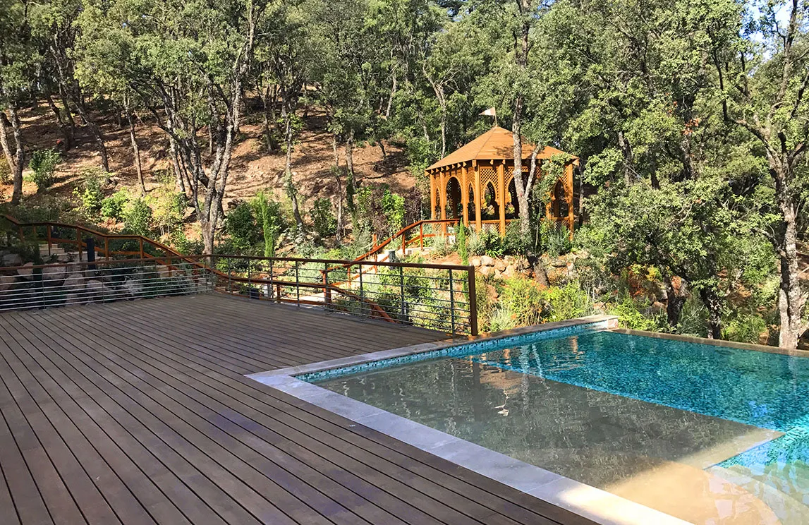 A completamento dell’opera, sono stati creati corrimano nei percorsi pedonali, guard rail a lato delle strade, gazebi, pergole e una struttura di delimitazione del campo da tennis a treillage.