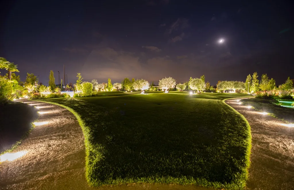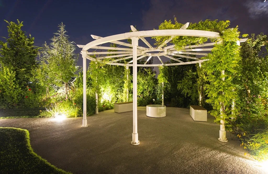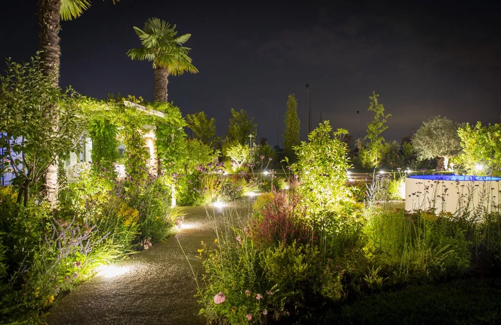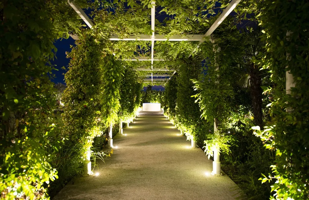 Un maestoso pergolato ricoperto di glicine, il suono rilassante dell’acqua, un percorso nella natura attraverso i sensi in un luogo in cui potersi perdere, tra linearità e tracciati sinuosi, in una dimensione senza tempo.