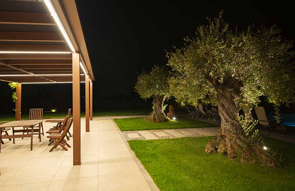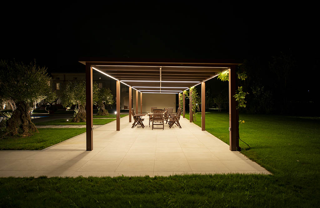 Uno dei nostri lavori più prestigiosi, una tenuta agricola del 1800. Ad esaltarne la sua bellezza notturna, un impianto d’illuminazione da noi progettato e realizzato; efficace, scenografico, funzionale, con un sistema di illuminazione led in grado di creare un’atmosfera magica nel totale rispetto dell’ambiente circostante.