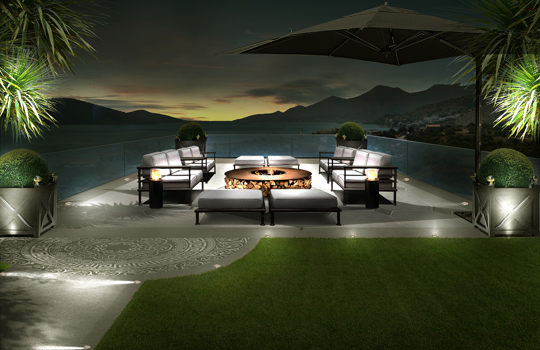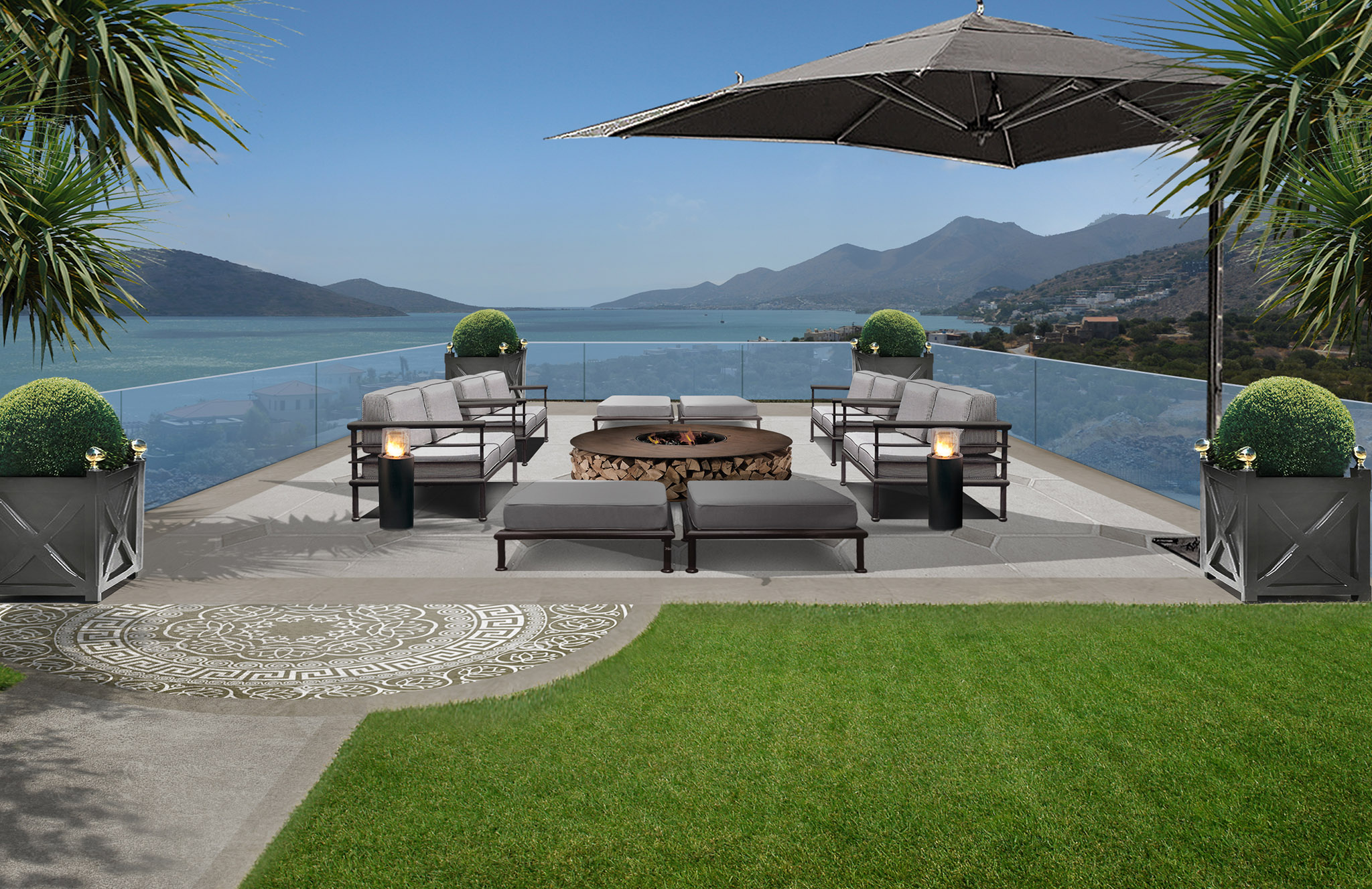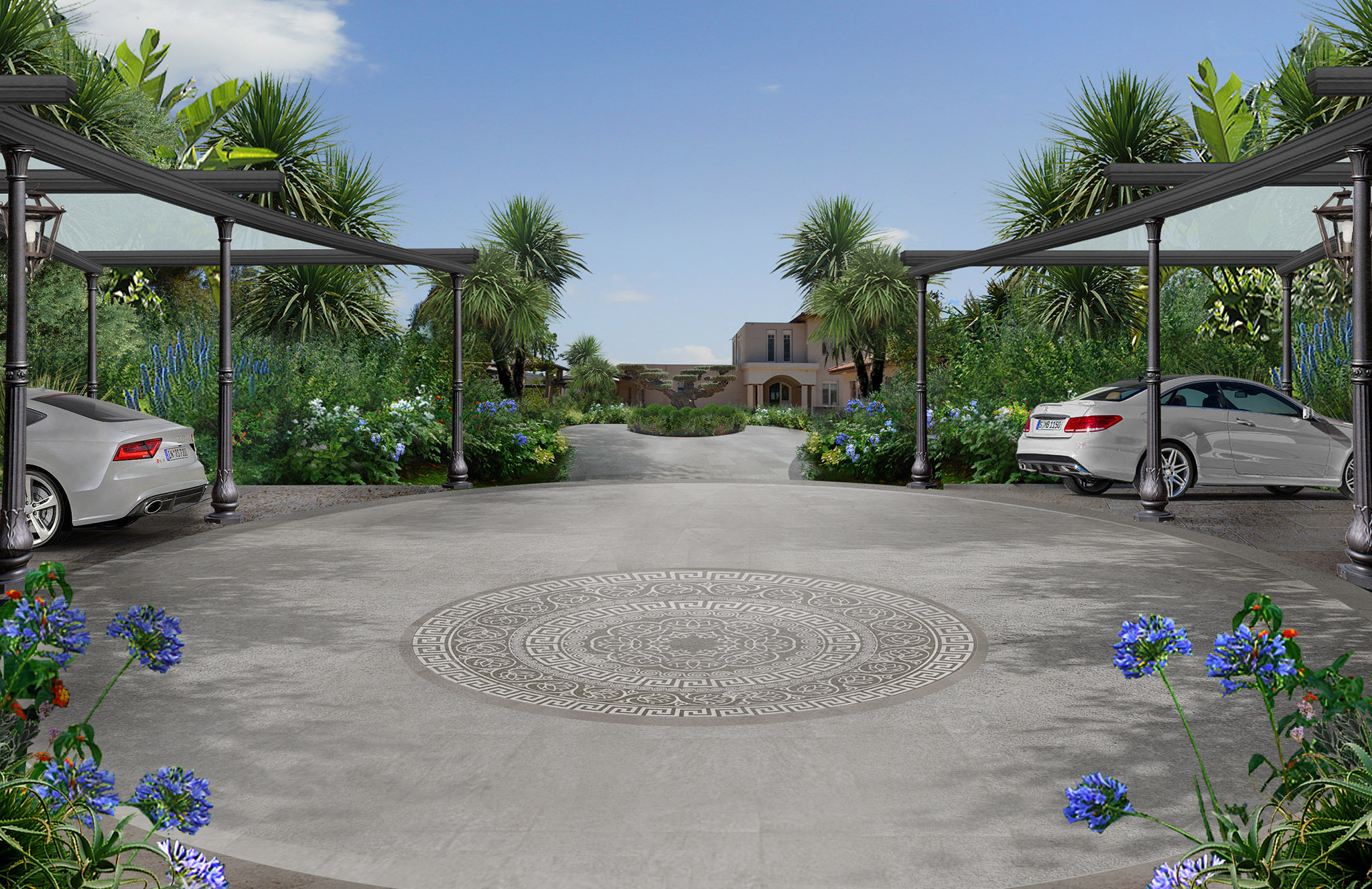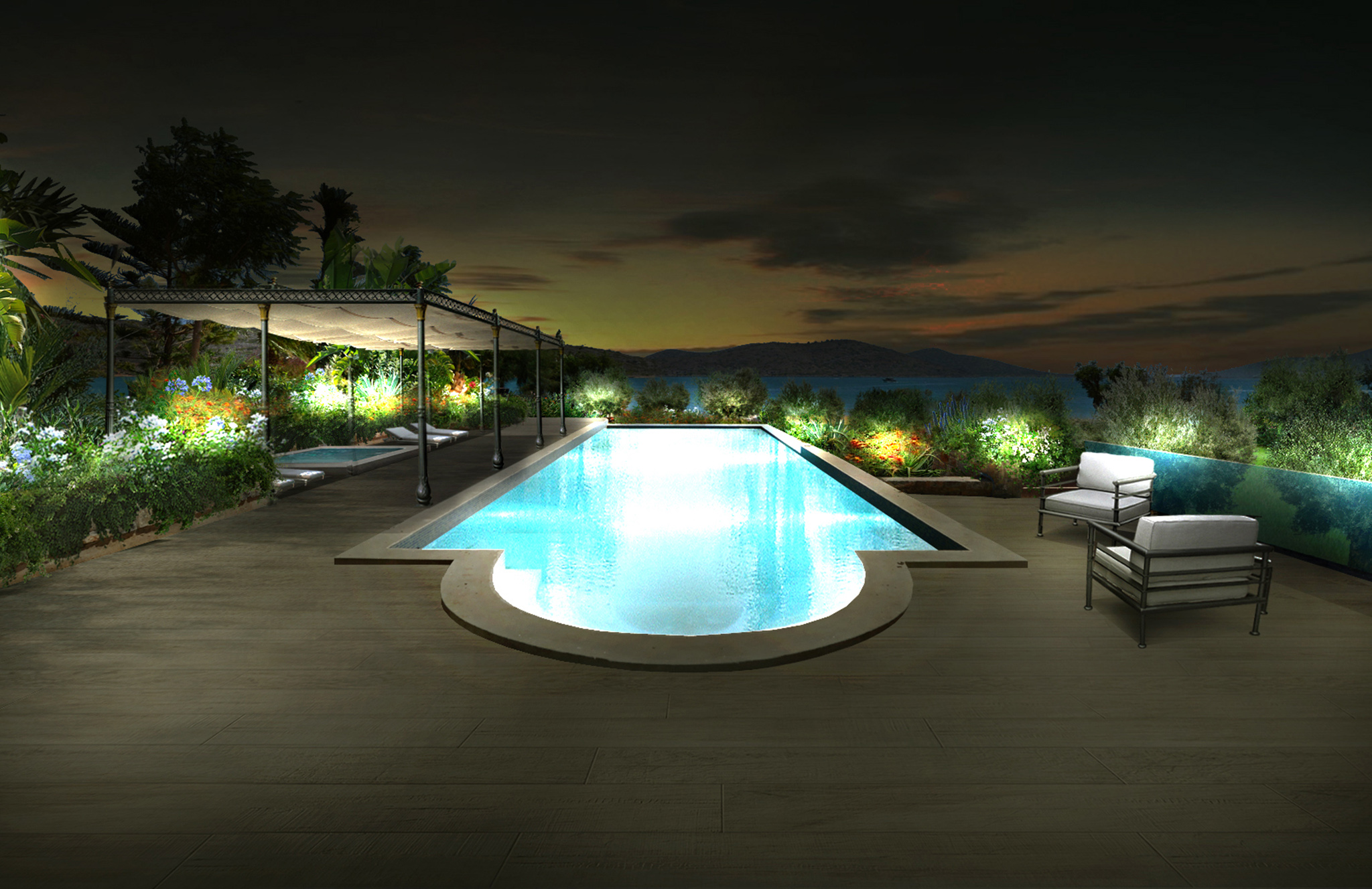 Una progettazione del verde dettagliata e rigogliosa di un complesso di ville sull’isola di Creta.