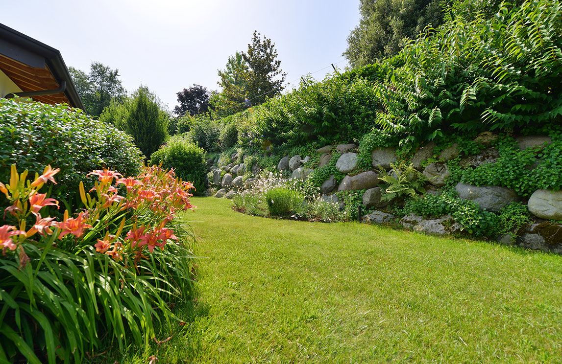 Per questa meravigliosa villa sono stati, inoltre, concepiti un prato carrabile Paving Green, un campo da calcio in erba naturale e il sostenimento delle scarpate naturali tramite la realizzazione di scogliere verdi realizzate tramite massi ciclopici.
